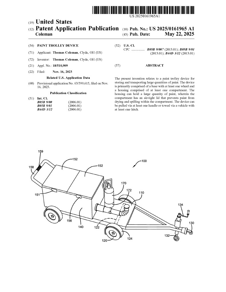 The Paint Trolley Device is currently available for licensing discussions with qualified manufacturers and distributors.