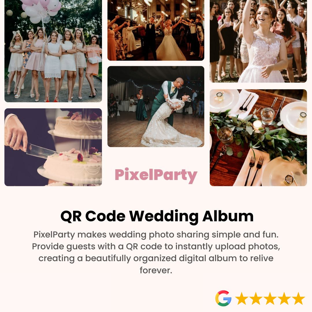 Unlike traditional photo-sharing apps, PixelParty uses a QR code for wedding photos that guests can scan with their phone to upload pictures directly to a private online album.