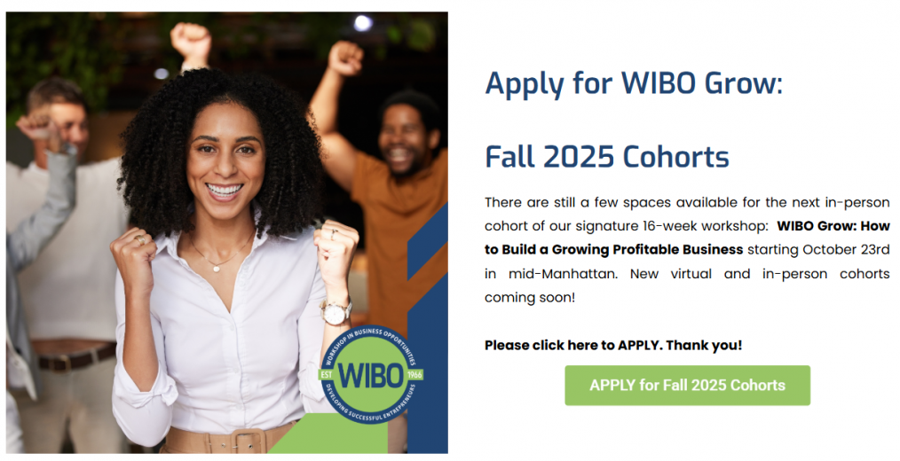 WIBO Grow: A 16-week hands-on in-person program starting Thursday, October 23, 2025, and running through February 2026 | 6:00 PM – 9:00 PM (EST). This program is designed to help business owners refine their strategies and scale their business.